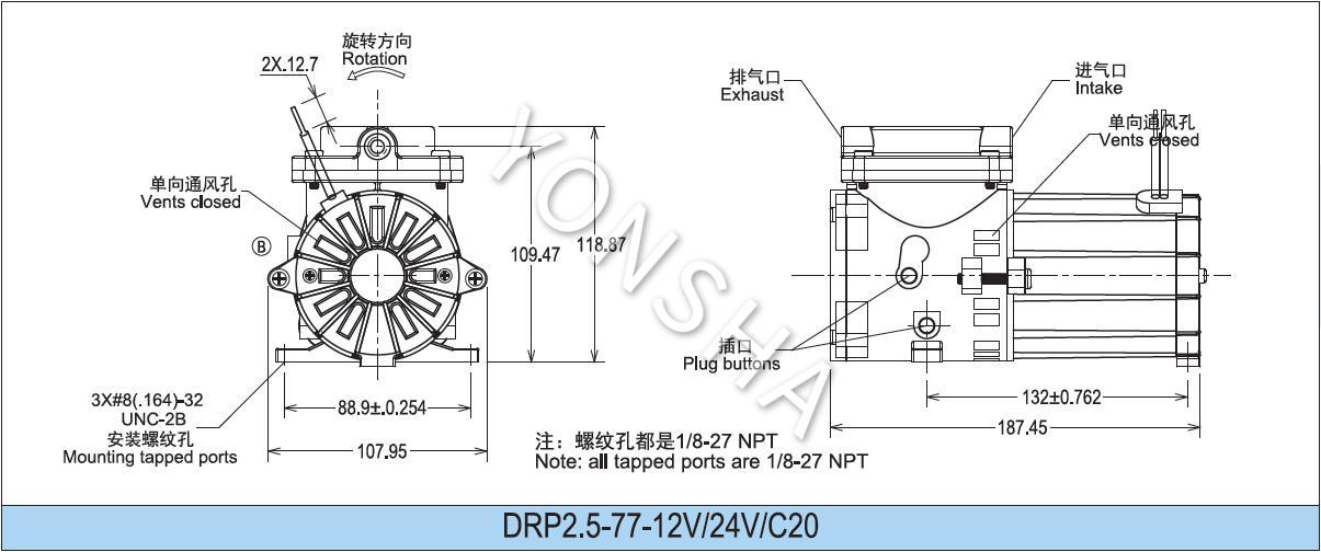 Dry vane rotary vacuum pumps -DRP2.5-77-12V/24V
